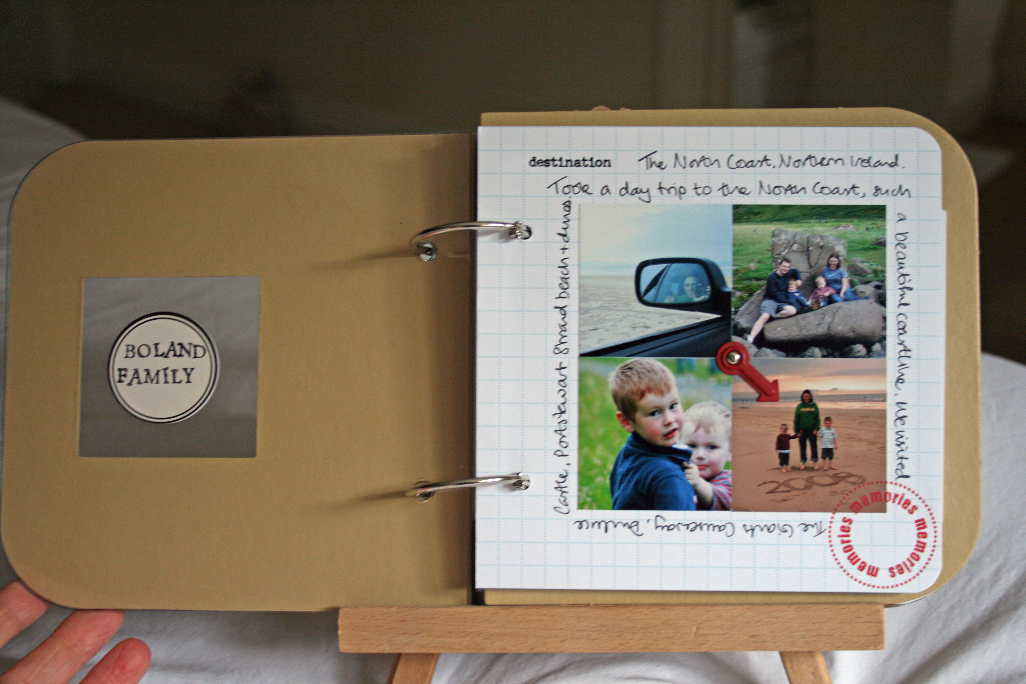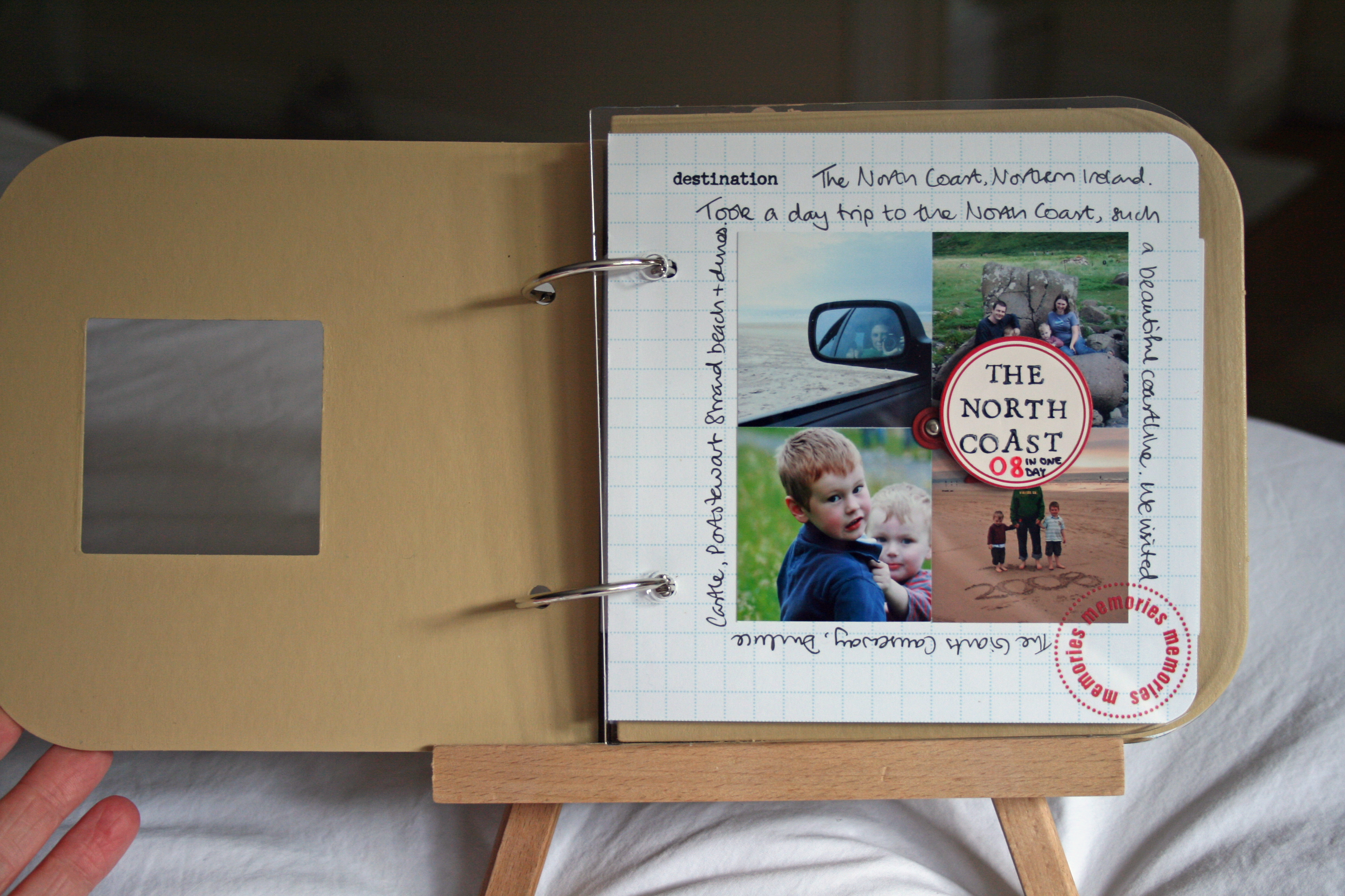 3. Mini Album - When I was over in Northern Ireland in the summer, Janine and I encouraged each other to order a mini album, along with a signed Ali Edwards book 'Sharing Your Story' from an American company called Cocoa Daisy (such a cool name). I decided to make a mini-album about our 'One Day at the North Coast'. We had such an amazing day (sand dunes etc) and I had taken nearly 200 photos so I had plenty of material to work with (thanks goodness for digital cameras). Here's how it came out...