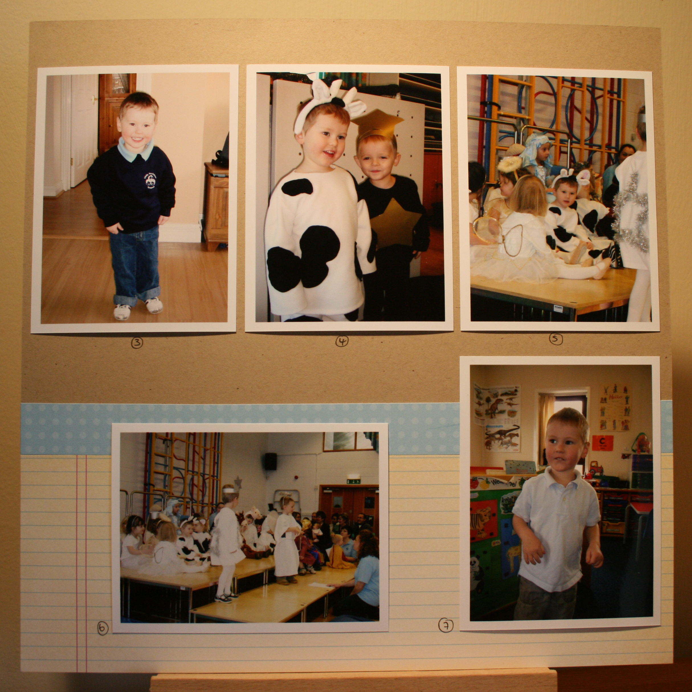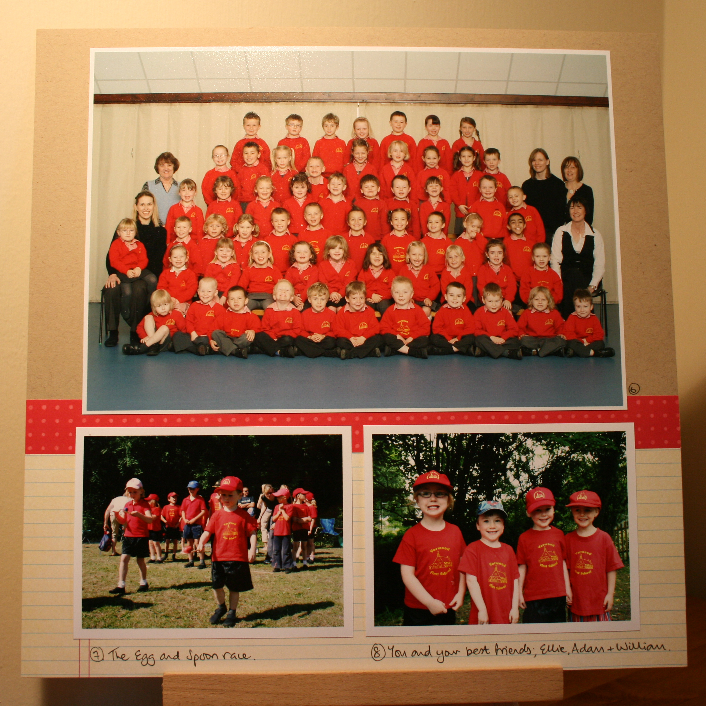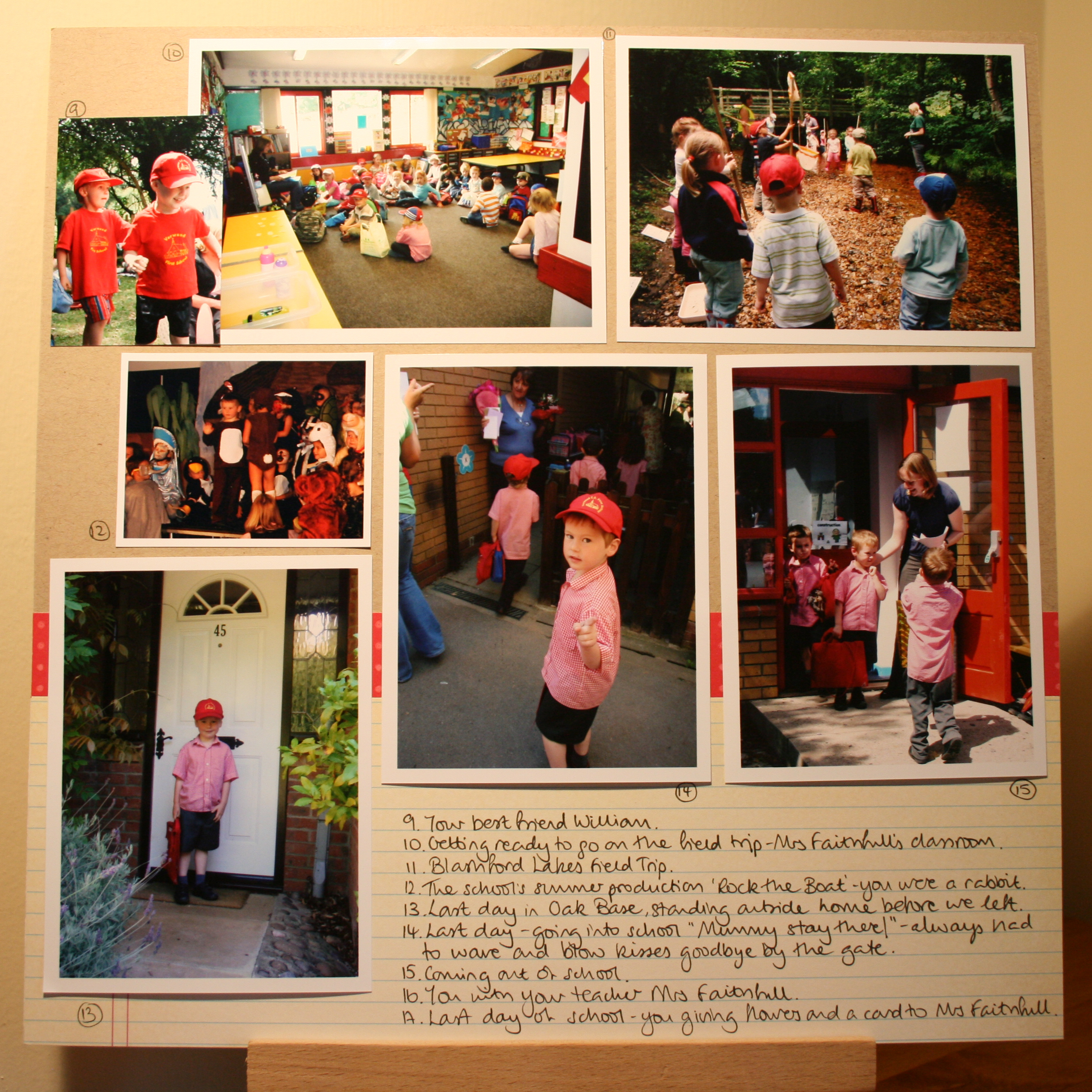 2. A 12 x 12 Album - 'The School Years' for Matthew. For those of you who are into scrapping you may have seen this idea in Cathy Zielske 'Sequel' book, and she in turn had taken it from Stacey Julian. For those of you who aren't; basically the idea is to make 4 pages for each year of your child's school life, which you complete just once a year. Here's what's in Matthew's so far; pre-school and reception. I have bought enough Scenic Route lined paper for the 15 years that he will be in education (up to A-levels) so that I can maintain the scheme. The only thing that will change will be the accent strip of patterned paper on each page, which I plan to match to his uniform. Blue spot (KI Memories) for pre-school and red spot (Scenic Route) for his first school. Also added 7gypsies report cards just because they look so cute!