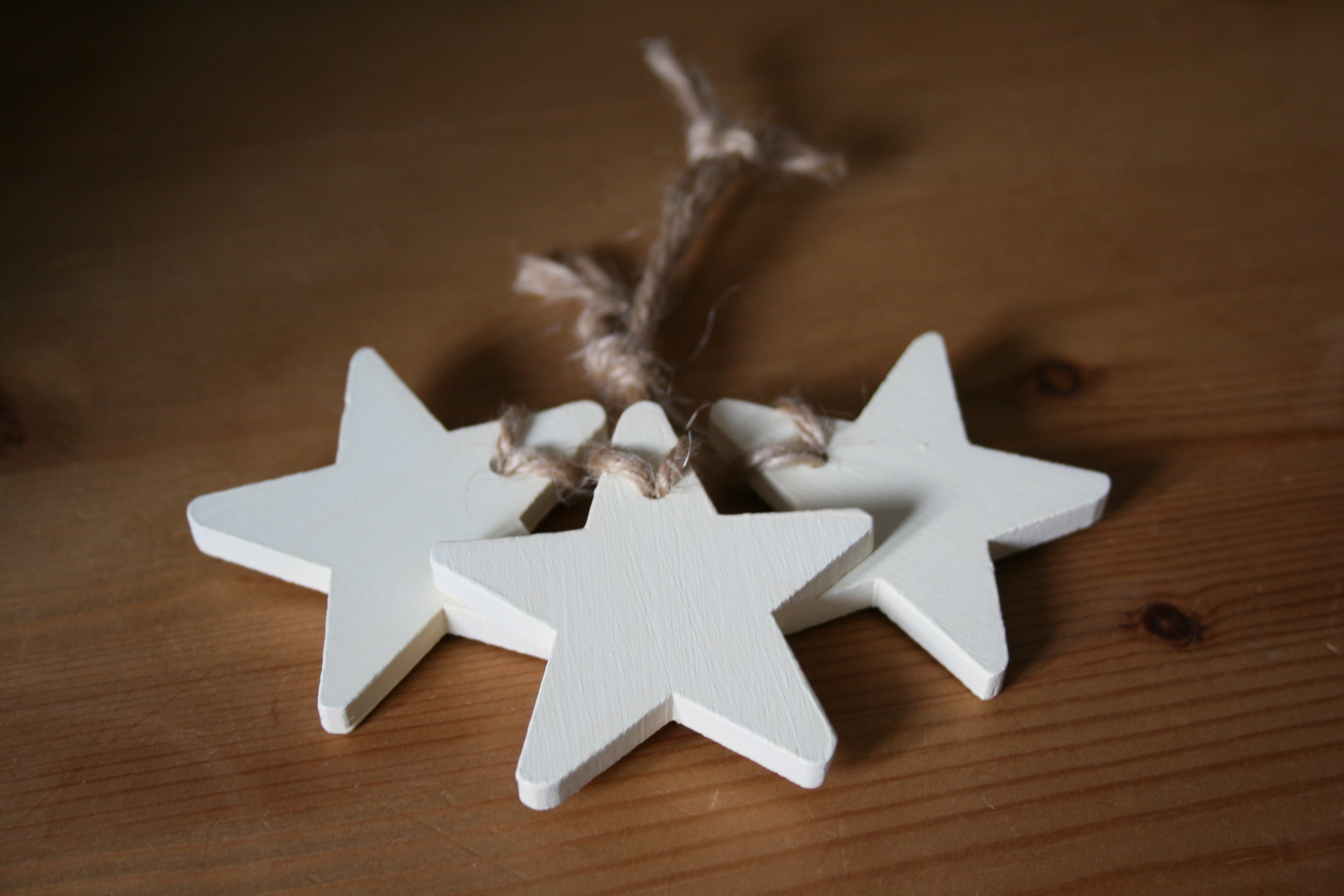 Cream Wooden Stars, 3 pack strung on twine (approx size 5cm).