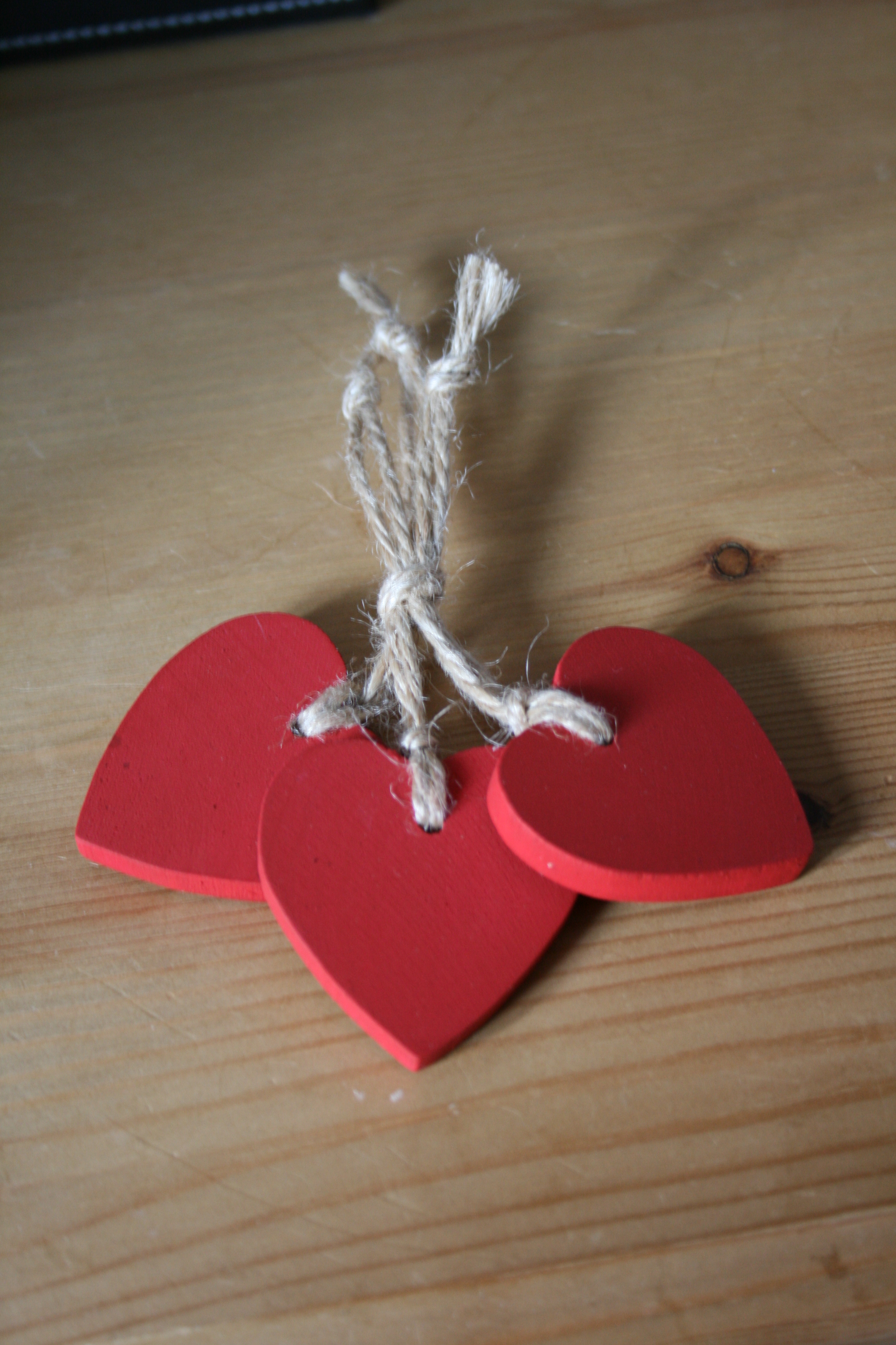 Tree Decorations - Red Wooden Hearts, Pack of 3 (approx size 4.5cm), strung on twine - one of my best sellers from last year.