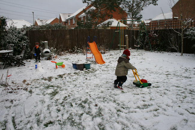 The boys have enjoyed playing in the snow, they had two days off due to their school being closed. On Monday, Callum decided to mow the snow and I helped them build a snowman, albeit a very small one!