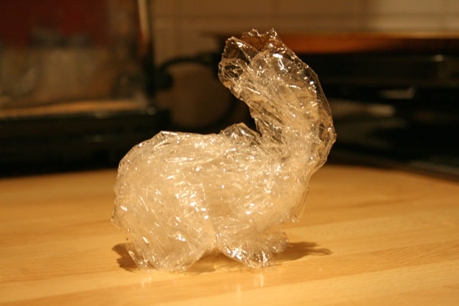 I'd better wrap it up now, but I'll leave you with this photo. It's some scrunched up clingfilm which had been left on the worktop. As I was about to pick it up and put it in the bin I noticed that it looked like a rabbit. Jeff thought it looked like a rabbit too and Matthew thought it looked like an elephants head (you'll need to tilt your head to the left to see it). What do you think?