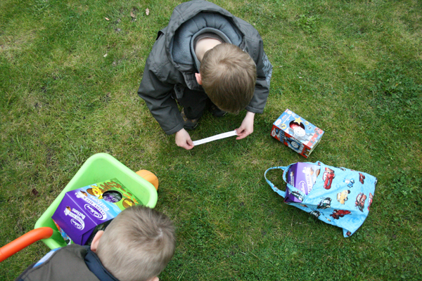 This years Easter Egg hunt took place in our garden with 17 clues leading to where treasure could be found. Matthew was great at reading the clues and then the race was on between him and Callum as to who could get to the treasure first.