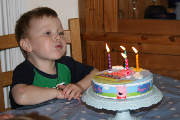 After initially wanting me to make him a chocolate and smarties cake, Callum changed his mind and chose a Peppa Pig cake and stripey candles. I was relieved he had changed his mind as I had little time to bake and decorate a cake.