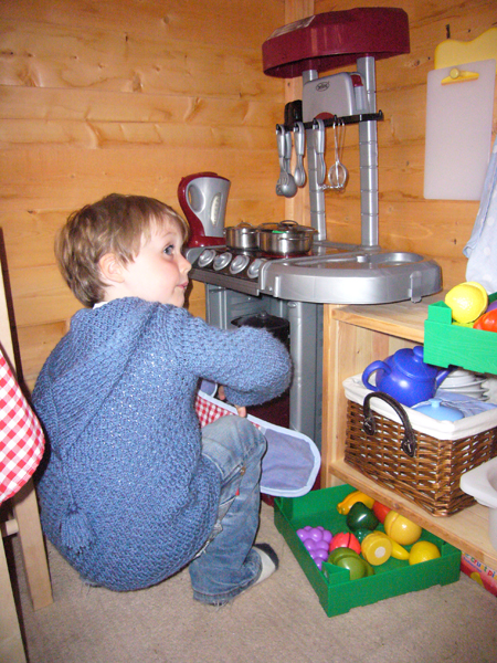 On Tuesday our friend Laura and her son took the train down here from London for the day. The weather was awful; rain, rain, rain - no trampoling for the kids, instead we spent most of the afternoon in the playhouse. Her son Zach was loving the kitchen and enjoyed baking cakes. (Great to have you down, but next time please stay for longer!)
