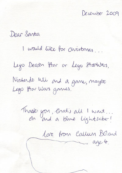 Well, the Lego Death Star kit is £270, so Santa gave Callum a Lego Star Wars magnet kit instead. It has Darth Vader, Obi Wan Kenobi and Chewbacca.
