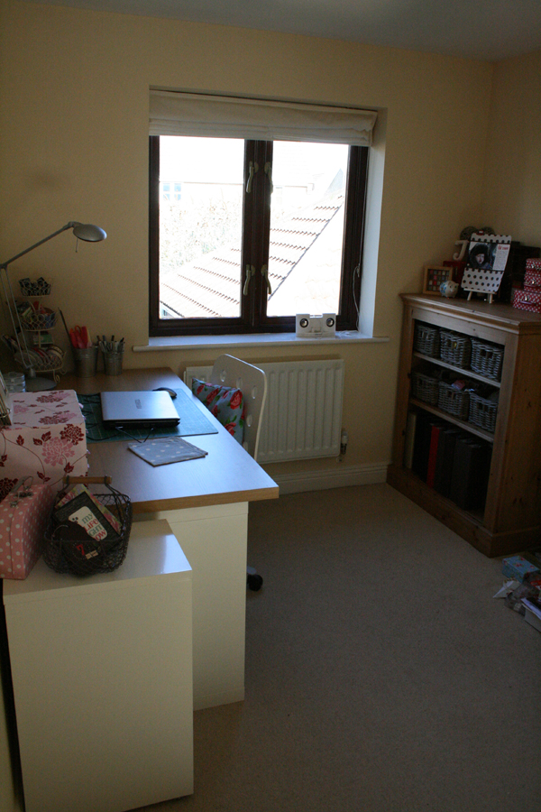 Everything else on the desk was bought 1 to 2 years a go. The desk lamp and the glass jars which contain ribbon are also from Ikea. The cardboard drawer unit on the desk in from WHSmith and contains acrylic stamps and inks. The cake stand is from Homebase, bought primarily for my Hearts & Flowers fairs, now currently holds more ribbon and gaffer tape. The galvanised pots are from Hobbycraft and contain tools and pens.