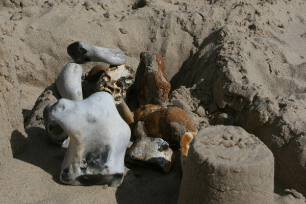 We spent part of the morning on the beach with Jeff's parents who were staying with us. The boys enjoyed building sandcastles, infact one was Dunluce castle (a ruined castle in Northern Ireland which Matthew has been fascinated by for years) and next to it they built Stonehenge with stones found on the beach - such imaginations! Here you can see "Stonehenge".