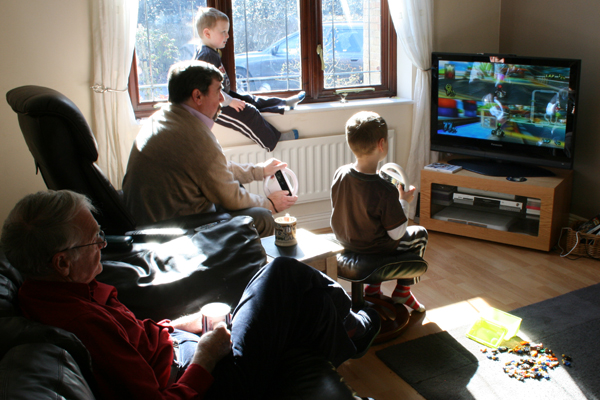 The whole family playing games on the Wii. Here Matthew is racing Grandad (my Dad) on Mario Kart. We also played games on the balance board too like Obstacle Course, Ski Jumping and Balance Bubble. It was such a laugh and everyone, I mean everyone had a go!