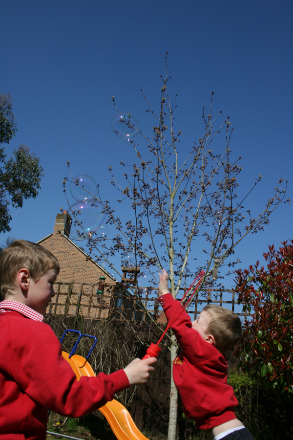 Fun in the garden with a big bubble wand I picked up at Morrisons in the morning.