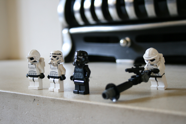 This is what I saw when I came back into the lounge. The boys been playing with the Lego Star Wars mini-figures before they went to school and this is how I found them - all lined up with a massive made-up gun!