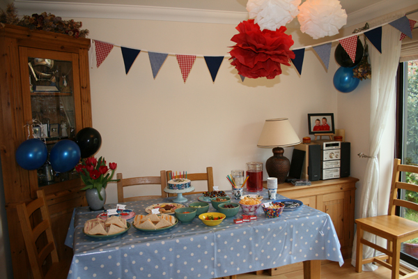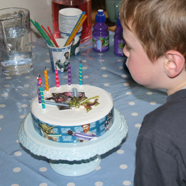 He had a party on Saturday with his friends here at home. 14 kids + rain = a noisy indoor party! The kids had a great time, but boy was it noisy! We had lots of games like musical bumps, musical statues, sleeping lions and pass-the-parcel. Plus they watched Star Wars whilst they ate their party lunch, which was a great success.