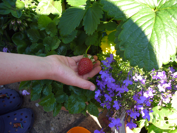 Here we've been growing our own. Just a few things in pots like strawberries, tomatoes, basil, runner beans, broad beans and cucumber. So far we've only eaten the strawberries and basil, but there are loads of tomatoes growing and lots of flowers on the runner beans. Callum is really keen to have home grown cucumbers, his absolute favourite vegetable. We'll have to see if those come to anything without being in greenhouse, until then we'll rely on cucumbers from Grandma and Grandad.