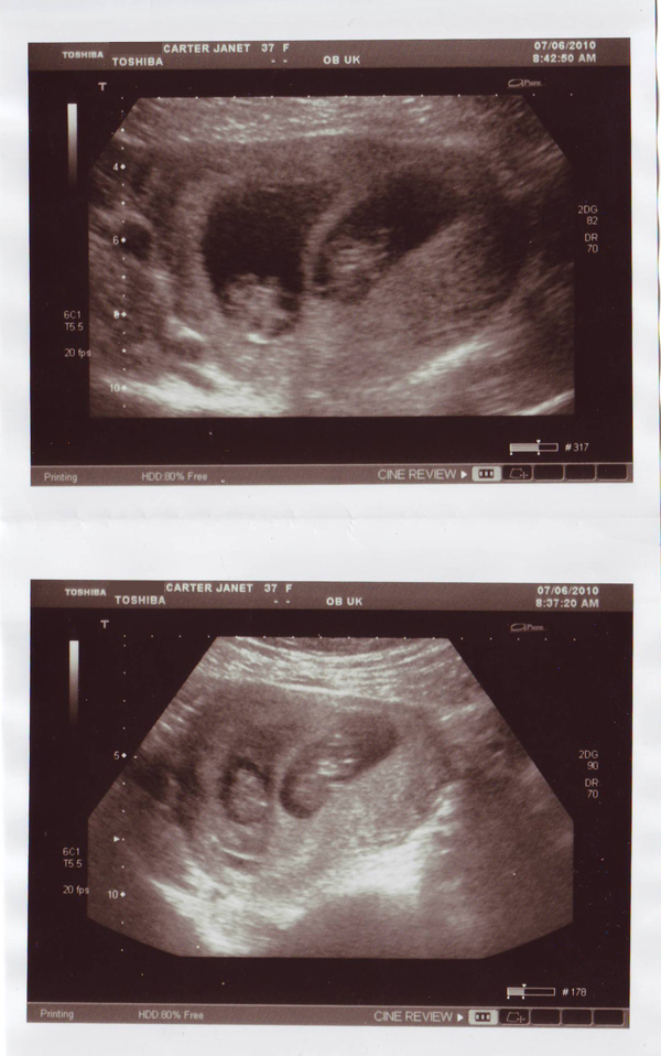 How very, very exciting! I'm hoping there's at least one little girl in there so that I can make cute wee dresses. These scans were taken a few weeks back when Janet was 11 weeks pregnant and now she's 16 weeks and showing a baby bump. They are due end of December, initally they thought on my birthday. However being twins they won't let Janet go any longer than 38 weeks so they will be here before Christmas. When Janet and Richard told my boys they were expecting Matthew was so happy that he cried, bless him. He then asked if he could take the scans into school for Show and Tell (I copied the original scans) and I told him to make sure everyone knew it was his Auntie who was pregnant and not Mummy!