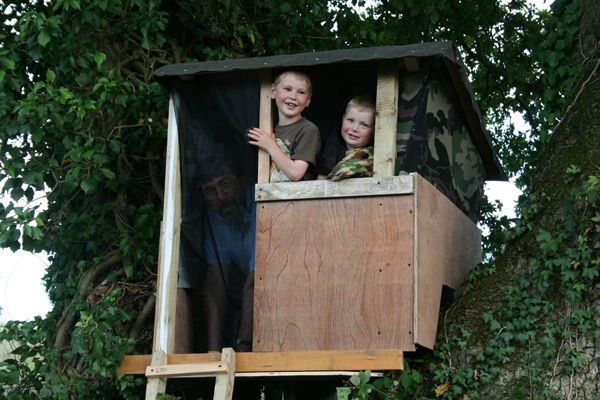 I took my sewing machine over to my parents house today and made a camouflage interior for the treehouse. It's got camouflage panels on the two sides and black netting on the back and front. Callum now wants me to make him a camouflage costume "like the ones they wear in the battle of Endor" (we're talking Star Wars, episode 6 Return of the Jedi). The treehouse reminds him of the Ewok village, where the little hairy Ewoks live in the houses up in the trees. AND you know what? I love the idea and maybe I'll get round to that this week sometime. Might even russle up an Ewok costume whilst I'm at it! He was running around their garden today with a camouflage fleece wrapped around him and his lightsaber hanging from his waist on a piece of string. Alas I was too busy sewing that I didn't think to take a photo of him, but here's some 'After' photos.