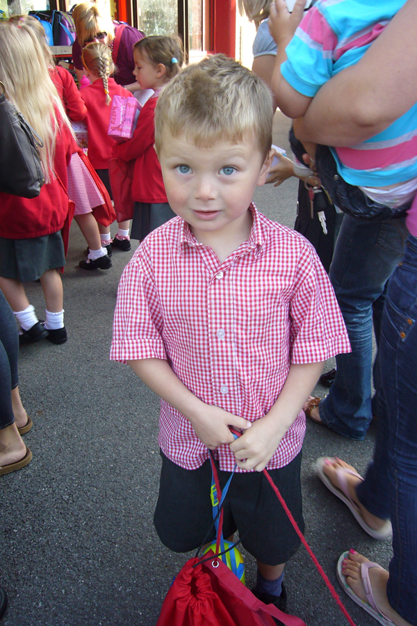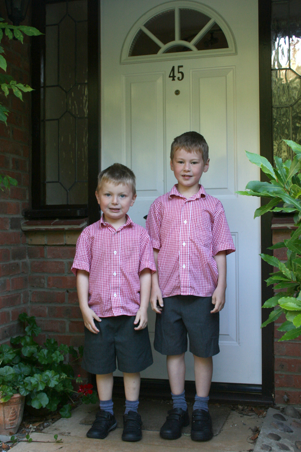 The sunshine has made a welcome return this week, so the boys wore their shorts today (which is good because I hadn't sewed the name labels onto their trousers yet).