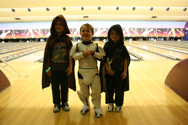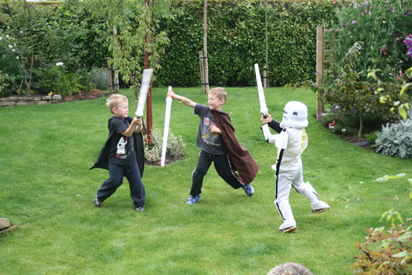 Matthew and Callum having fun as Star Wars characters at Zack's birthday party.