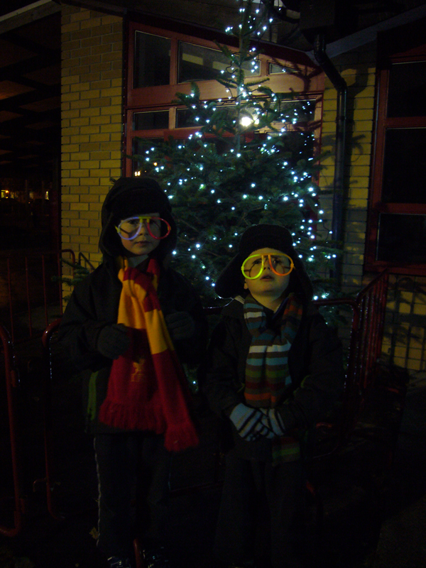 I took the boys to 'Carols in the playground' last friday night at school. They were selling glowstick glasses, which at 50p each I agreed they could have.