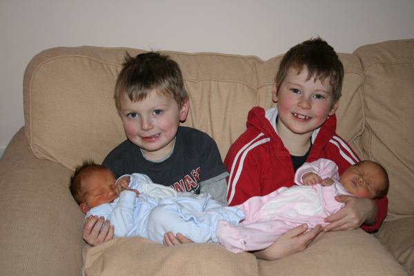 My sister Janet and her husband Richard welcomed these two little bundles of joy into the world on 23rd December 2010. A little boy, George (green hat) weighed in at 6lb14oz and a little girl, Louisa (red hat) 7lb5oz born 5:29 and 5:31 respectively two days before Christmas. My poor sister ended up having them via c-section and had to stay in hospital over Christmas, but she's home now.