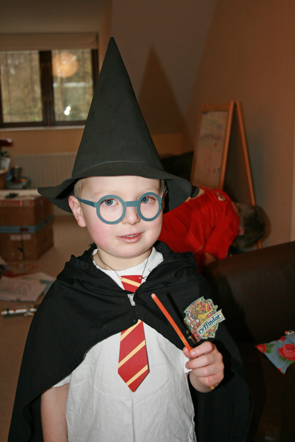 On Sunday Callum dressed himself in his Darth Vader cloak and a wizard hat, trying to look like Harry Potter. So sweet. Naturally I had to help him look about more like Harry. I found a website with printable HP glasses and a link to the Gryffindor crest. I printed them out onto cardstock, cut them out and stuck the crest to a brooch pin and onto his cloak. I made the tie from red cardstock with strips of yellow cardstock stuck onto it and attached some elastic. There you have it, a really quick Harry Potter costume, just need to add the lightning scar to his forehead with a eye liner pencil! Actually I plan to make them both 'proper' lined Gryffindor robes and some red Quidditch robes too, bought the fabric yesterday.