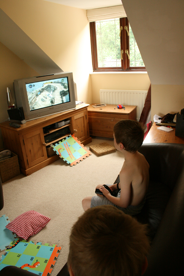 Still in pyjamas, well it is the holidays, Matthew plays Indiana Jones on the Wii.
