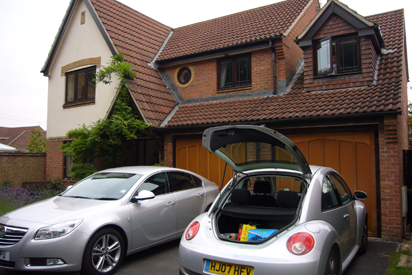 Just returned from a trip to Morrissons the local supermarket and Callum is telling me about what he's designed in Lego Digital Designer. Both those cars are mine, I'm selling my VW Beetle due to the arrival of my company car (actually this is a long term rental car until I get my real company car, which I'm sure won't be quite so impressive looking!).