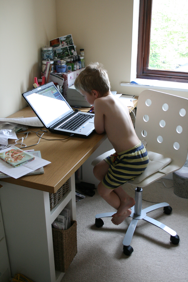 Before breakfast. Callum doing one of his favourite things - playing on Lego Digital Designer.