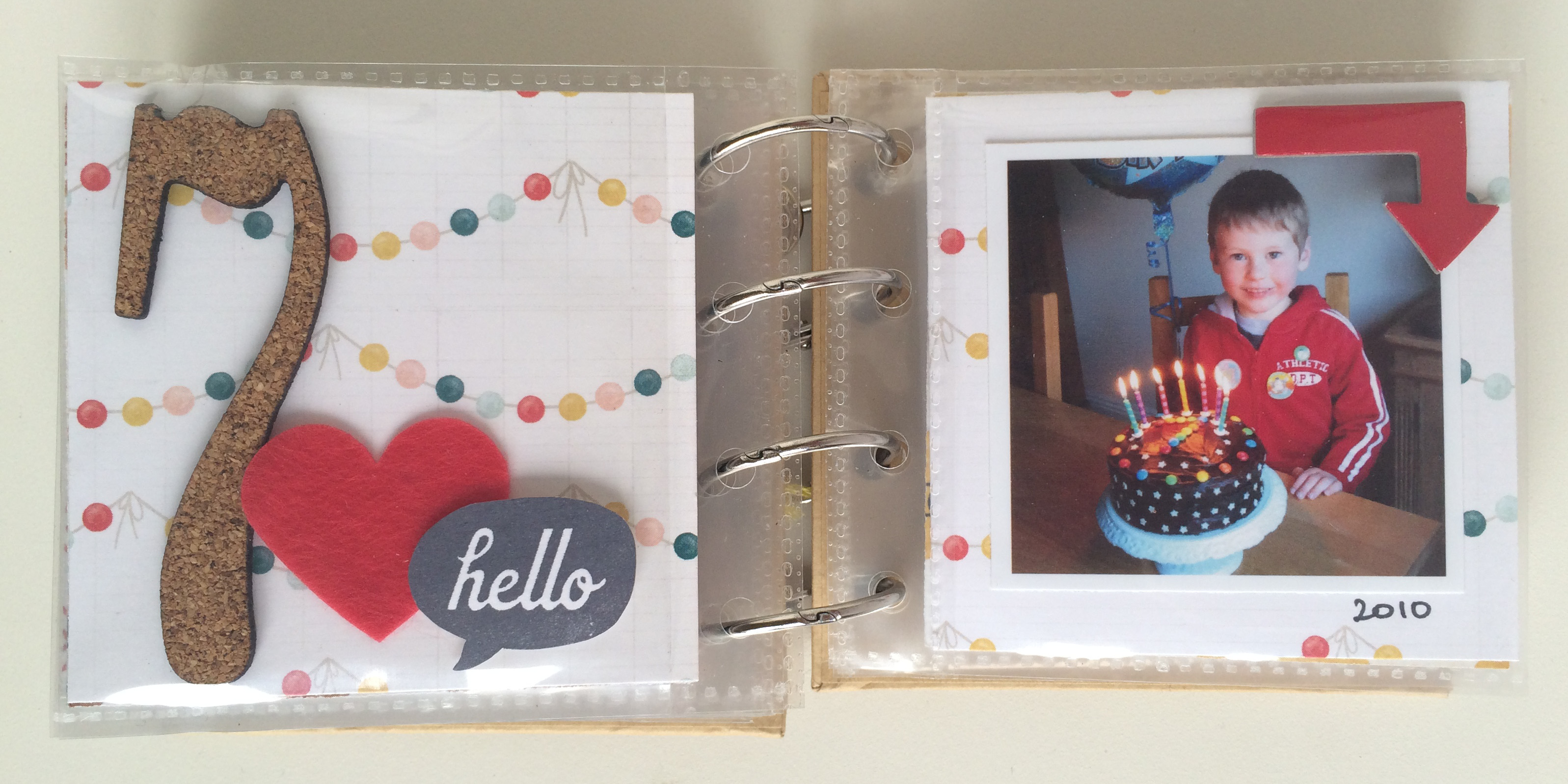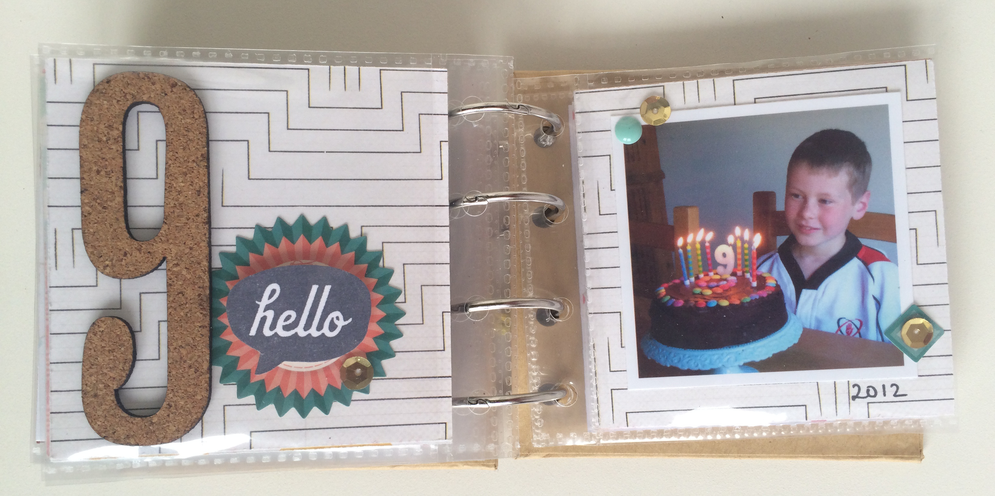 I'm using this mini-album as my project for Shimelle's challenge last weekend 'Make something that has value to me'. I now have two cute little books documenting my boys birthdays from 1 to 10. There may not be lots of writing and stories, but there's photos of each of them on each of their birthdays and that is very important to me, especially when you look at them side by side. Seeing the boys look through their little albums is pretty lovely too.