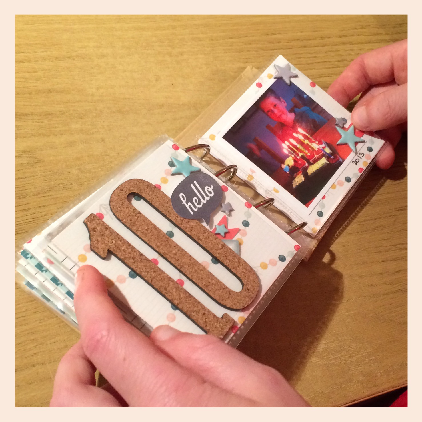 I wanted to use the same collection and album where possible to keep it similar and to use up some stash. I was lucky that the little Fancy Pants Designs 3x3" mini album was still in stock at Hey Little Magpie as were the Crate Paper cork numbers and some of the papers from the 2015 Wonder collection, phew! I made do with what I had left in terms of embellishments from the Wonder collection and added some Studio Calico stars, hearts and arrows from my stash along with some enamel hearts from HLM which I'd used in the previous album.